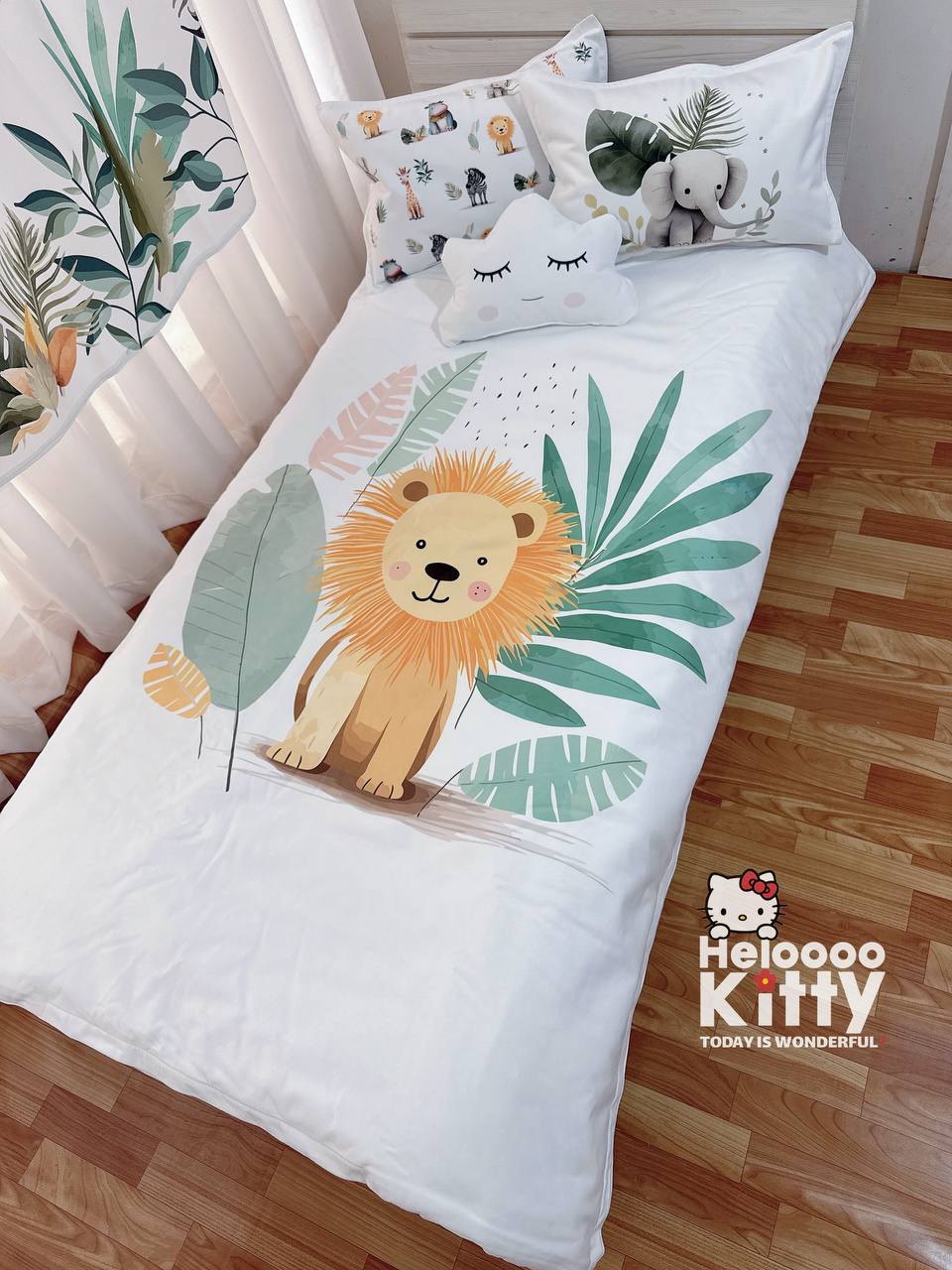 ست روتختی کودک و پرده اتاق کودک با طرح شیر و حیوانات جنگل — آرامش و خیال برای فرشتهی شما